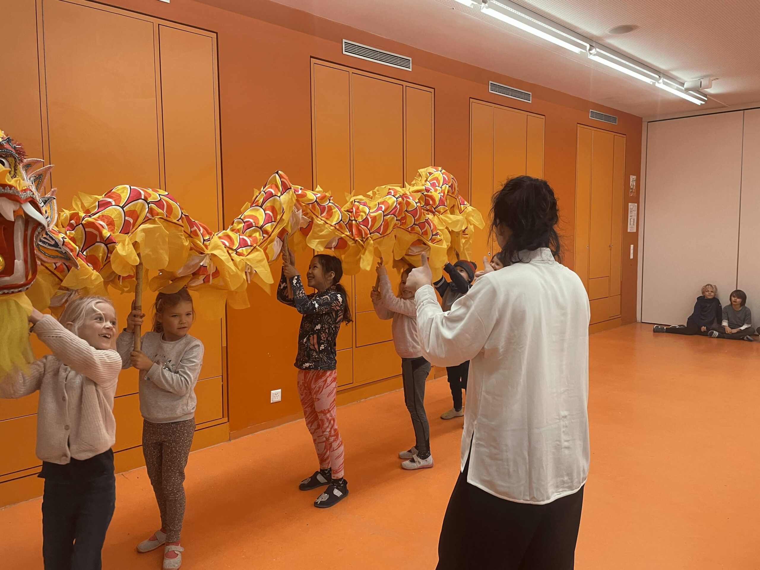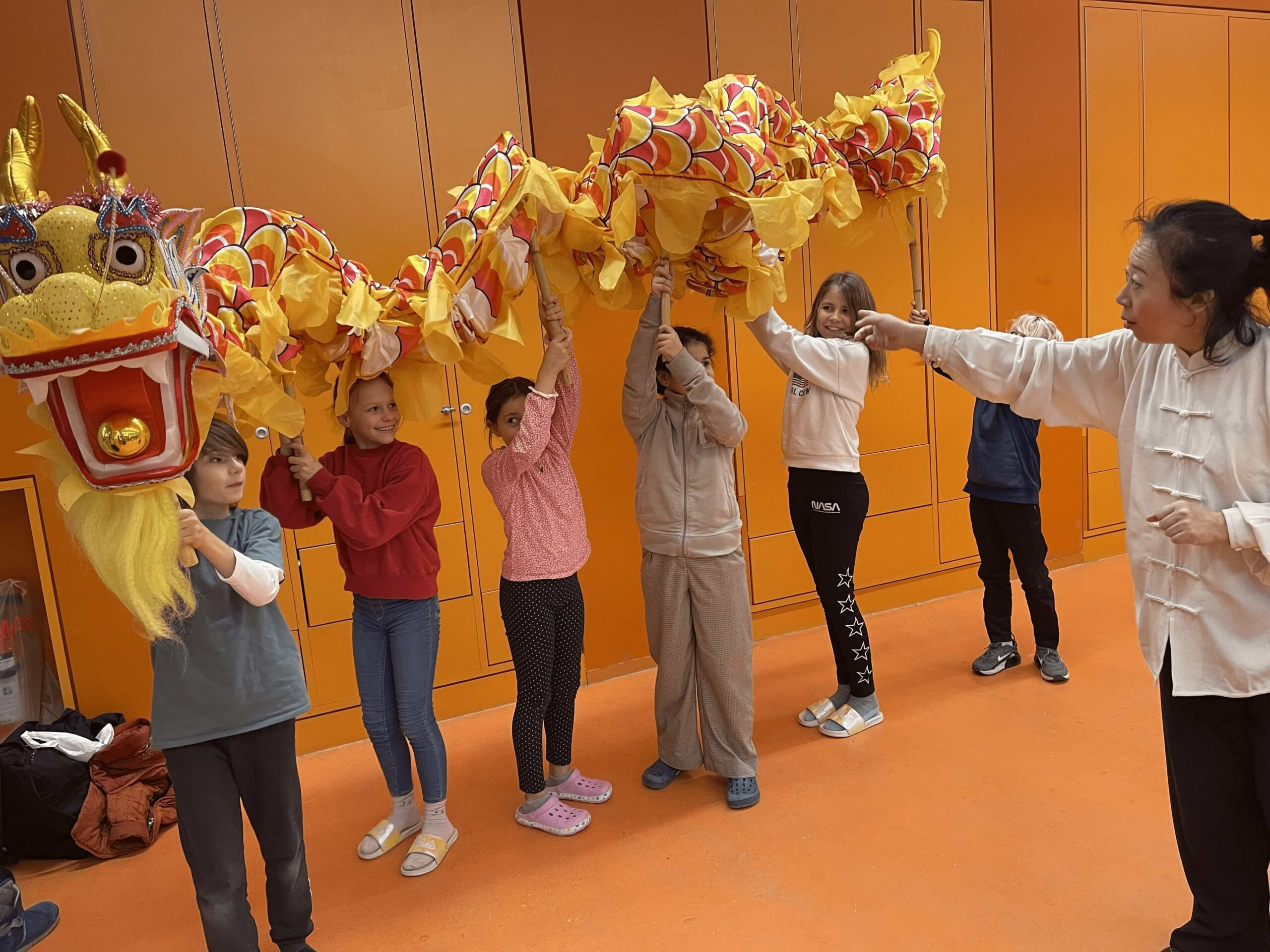 A l’occasion du Nouvel An chinois, des intervenantes du Dragon Kids Club sont venues faire des animations à la garderie, jeudi dernier. Au programme: danse du dragon et calligraphie!